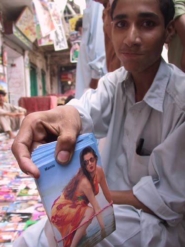 Boy admiring pictures of half-nude women in Peshawar