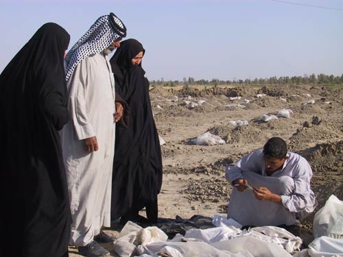 Locals searching for the remains of a relative in the Hillah mass grave